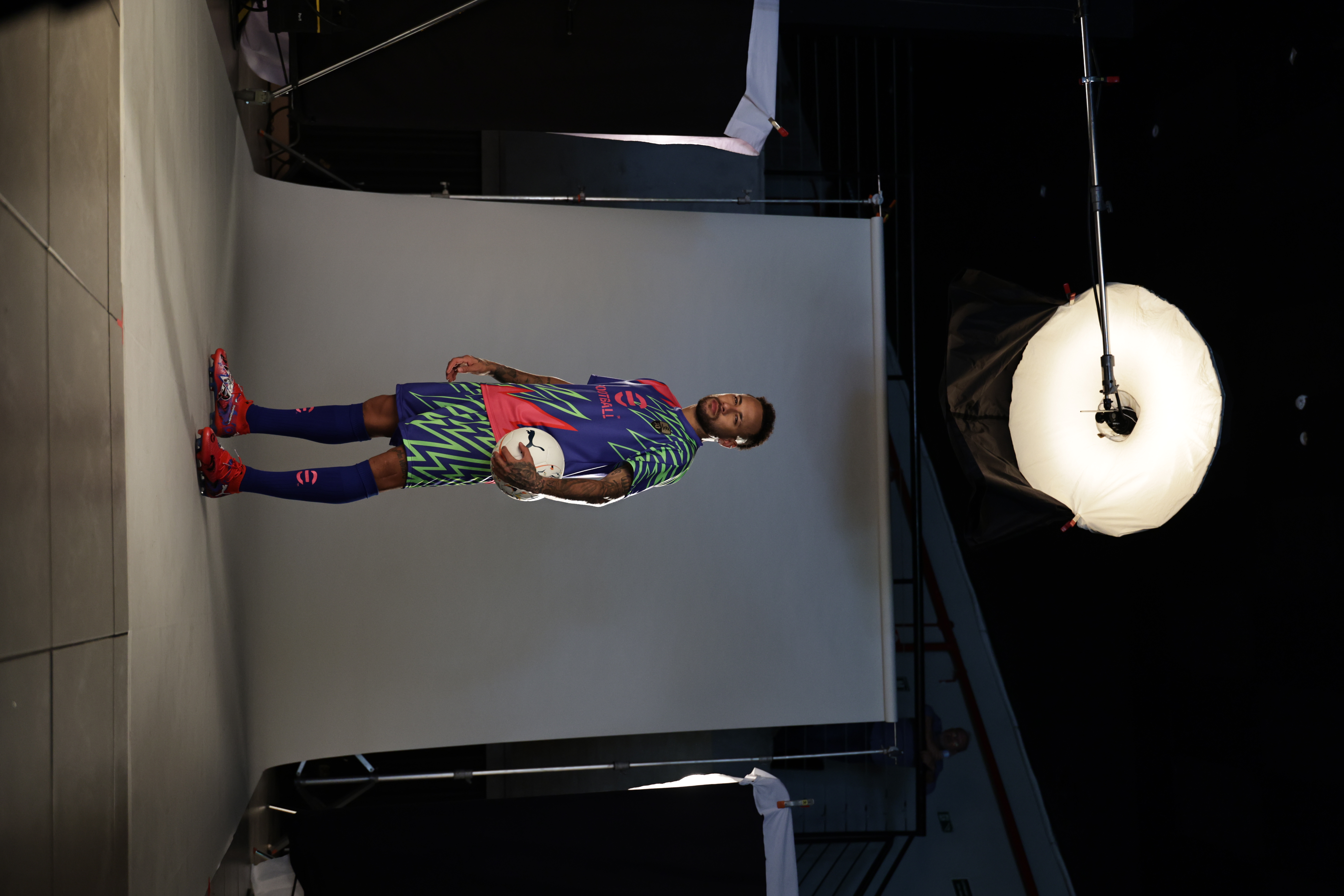 Uniforme eFootball 30 Years composto por camisa, shorts e meiões usado pelo Neymar Jr na Diária Konami realizada em Santos.
