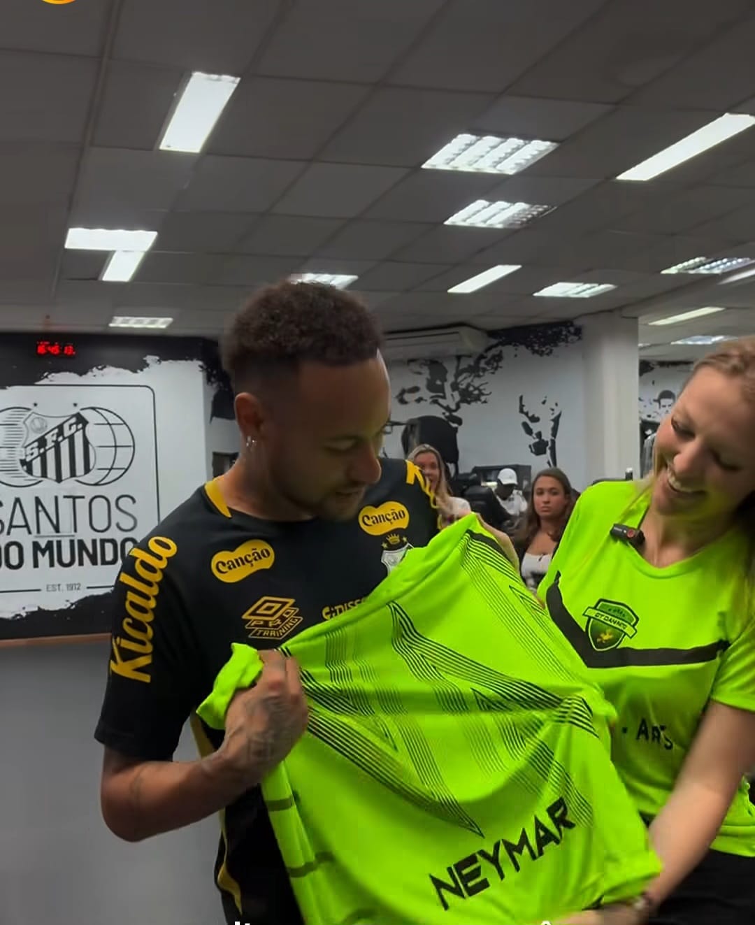 Neymar Jr recebeu de presente a camisa no Bate papo com quem entende com Dani Pato.